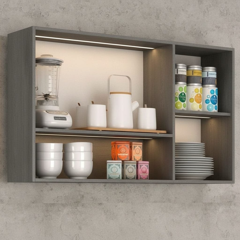 Organize your kitchen efficiently with this modern Kitchen Open Cabinet, designed to combine style, durability, and functionality. Whether you are a home cook or just looking for smart storage solutions, this Kitchen Open Cabinet provides multiple shelves to store all your kitchen essentials such as utensils, plates, jars, and small appliances like microwaves or toasters.